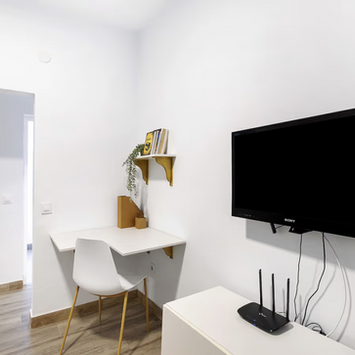 Espacio con escritorio y silla giratoria para aquellos que viajan por trabajo o necesitan un rincón tranquilo para estudiar.