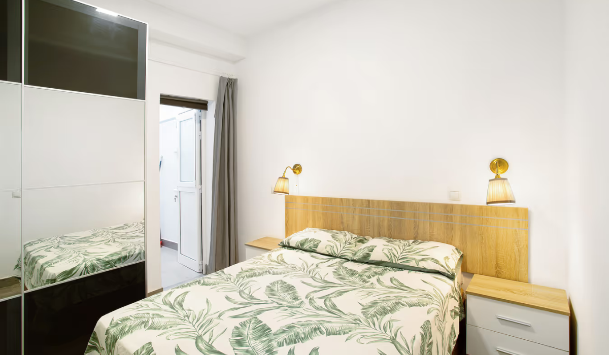 Apartamento de 45 m2 distribuidos en un dormitorio, salón con sofá cama y zona de trabajo, baño y cocina equipada.